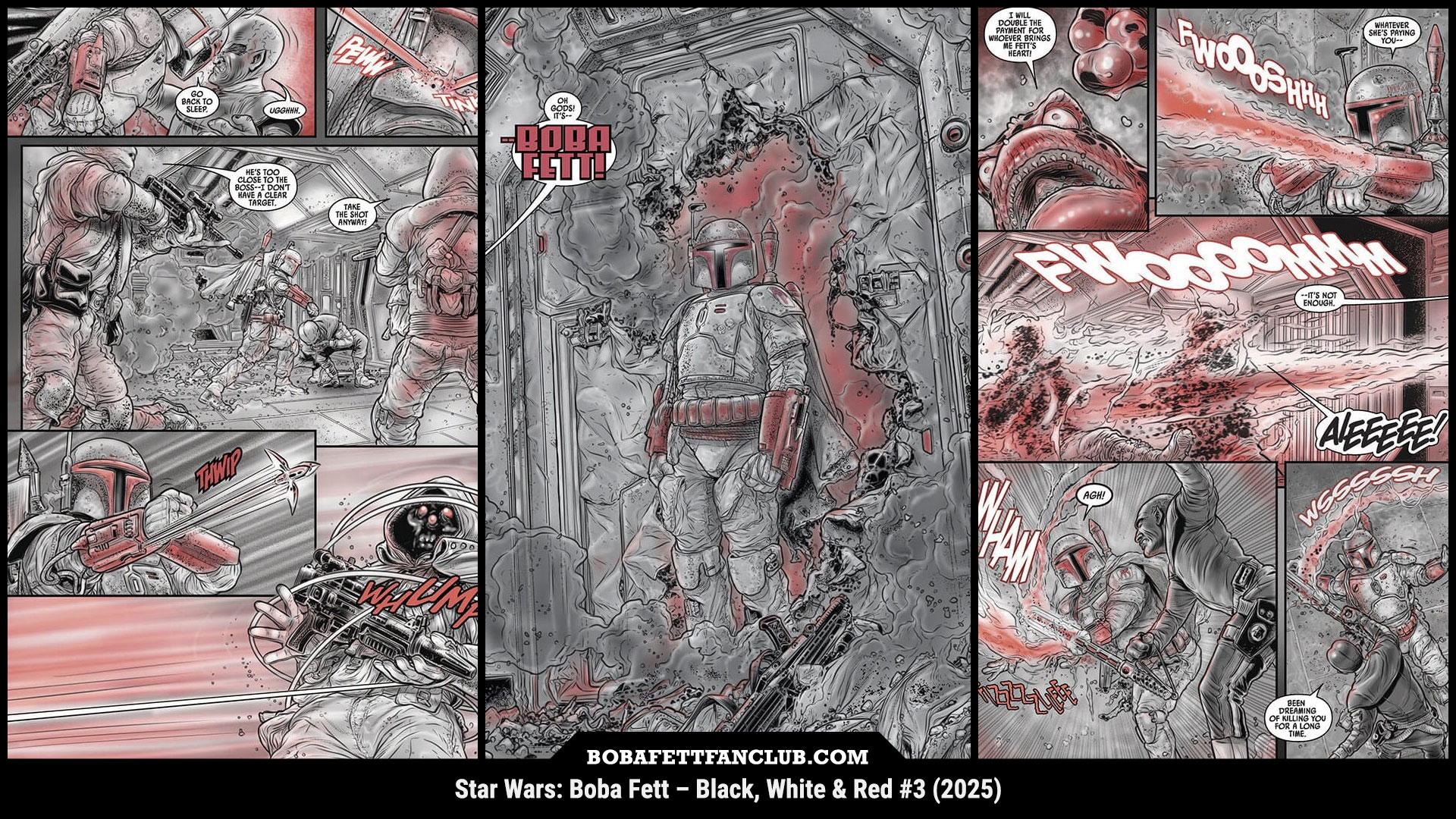 View on Tumblr | Mastodon#NYCC: Saturday's Lucasfilm Publishing panel featured writer Ethan Sacks showing off his upcoming work for #StarWars: #BobaFett – Black, White & Red #3, dropping in November