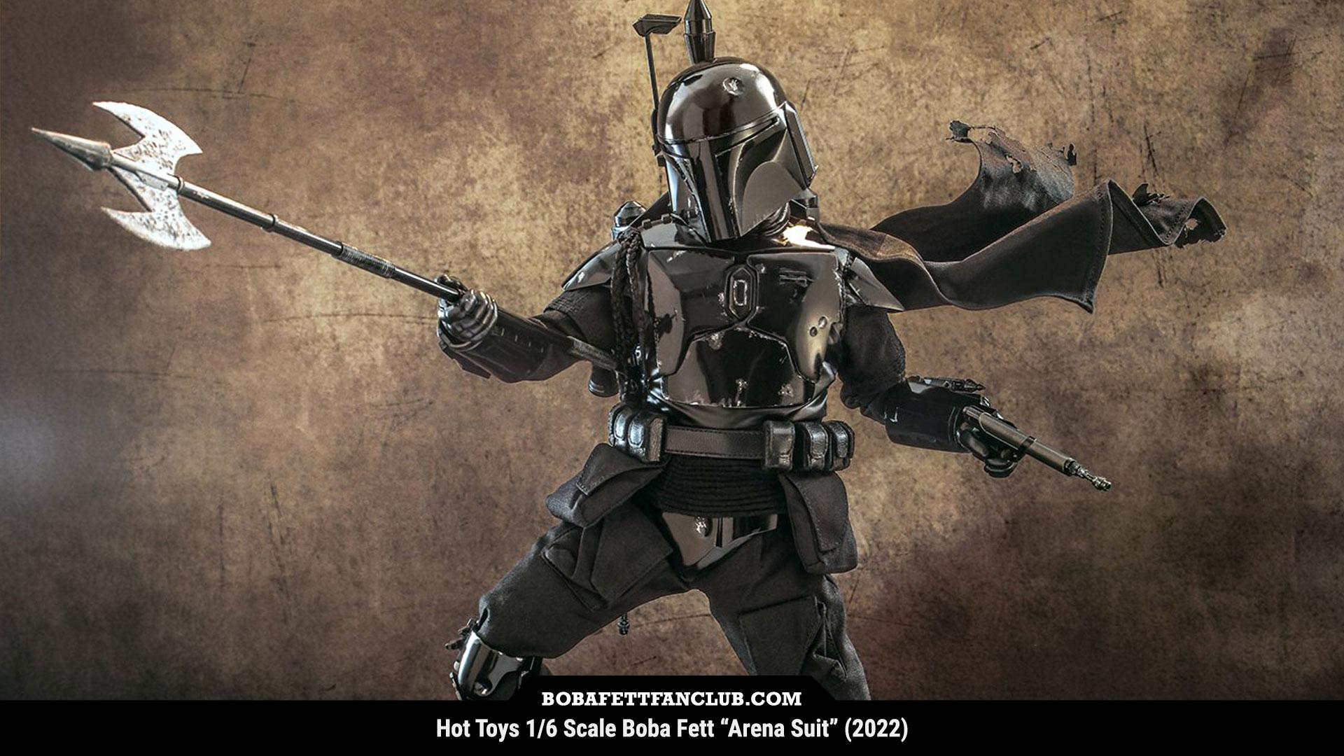 Shown here is the "Arena Suit" release in 2022, inspired by his temporary all-black look in the #WarOfTheBountyHunters Alpha #1 comic from 2021