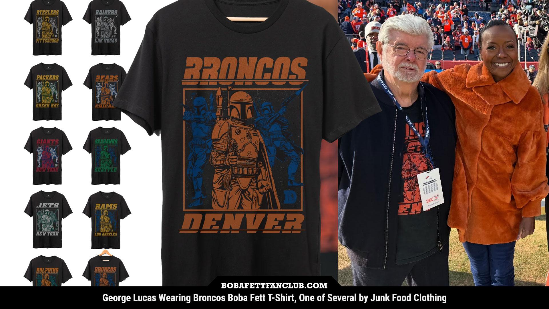 View on Tumblr | Mastodon | BlueskyGeorge Lucas was spotted wearing a Broncos #BobaFett t-shirt at Saturday's game, thanks to a photo posted by his wife Mellody Hobson