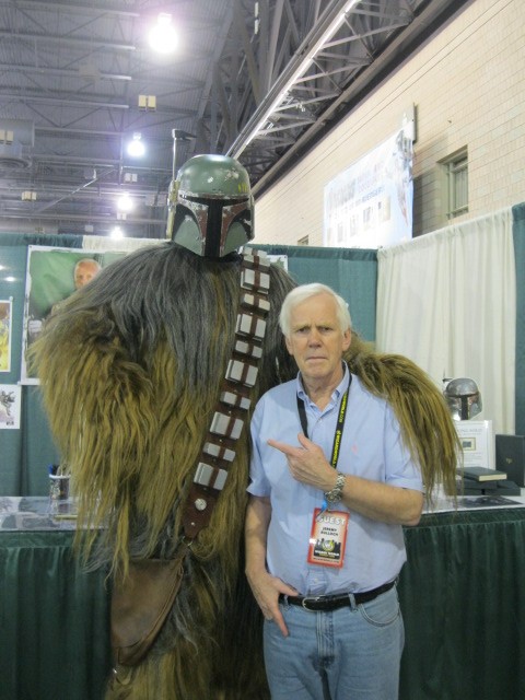 Chewbacca with Boba Fett's Helmet alongside Jeremy Bulloch