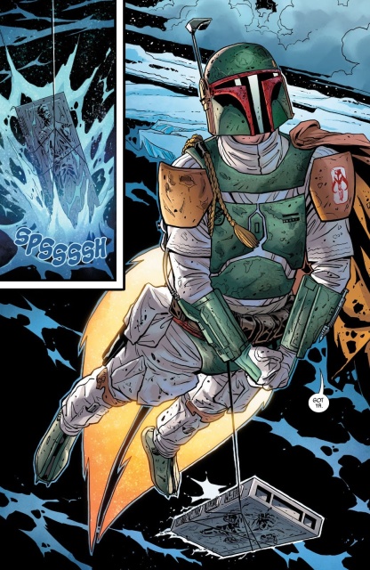 Overall, this is a mediocre ending at best to a terrible comic run. What else can I even say at this point? The plot alternated mostly between boring and stupid, with a few awesome moments sparingly sprinkled in. I’m just grateful that Boba Fett won’t be involved in the rest of the Crimson Dawn arc. Legendary characters like him should be left to competent storytellers. These comics make me grateful that the likes of Dave Filoni, Jon Favreau, and Robert Rodriguez will be handling “The Book of Boba Fett.” This final sequence was decent — I was close to giving this comic a 3 out of 5. However, the moronic and ridiculous fall of Han Solo from space, through the sky, and down to the ocean brings the issue down to a 2.